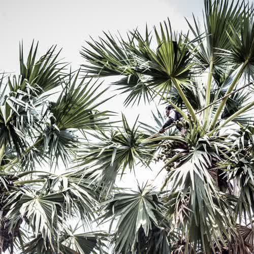 | คำอธิบาย : เมื่อปีนไปถึงยอดตาล ก็ทำการเก็บลูกตาล ซึ่งเป็นตาลอ่อน เพื่อนำมาทำขนมและทานสด |