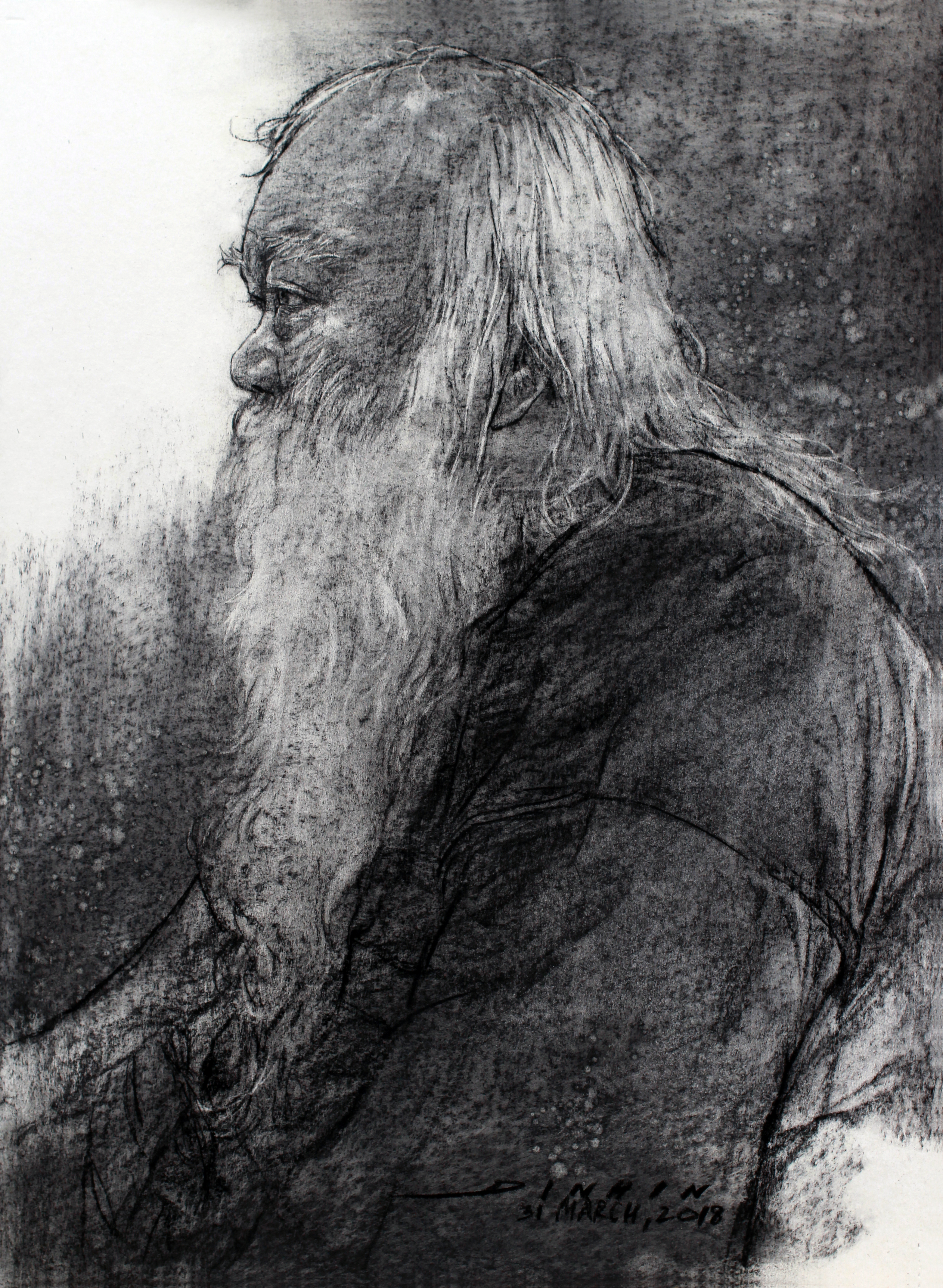 | คำอธิบาย : ภาพวาด อ.ถวัลย์ ดัชนี เทคนิคเกรยองบนกระดาษ |