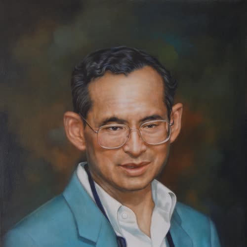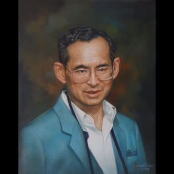 | คำอธิบาย : พระบรมสาทิสลักษณ์ พระบาทสมเด็จพระปรมินทรมหาภูมิพลอดุลยเดช ภาพวาดสีน้ำมัน |