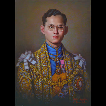 | คำอธิบาย : พระบรมสาทิสลักษณ์ พระบาทสมเด็จพระปรมินทรมหาภูมิพลอดุลยเดช เทคนิคสีน้ำมัน |