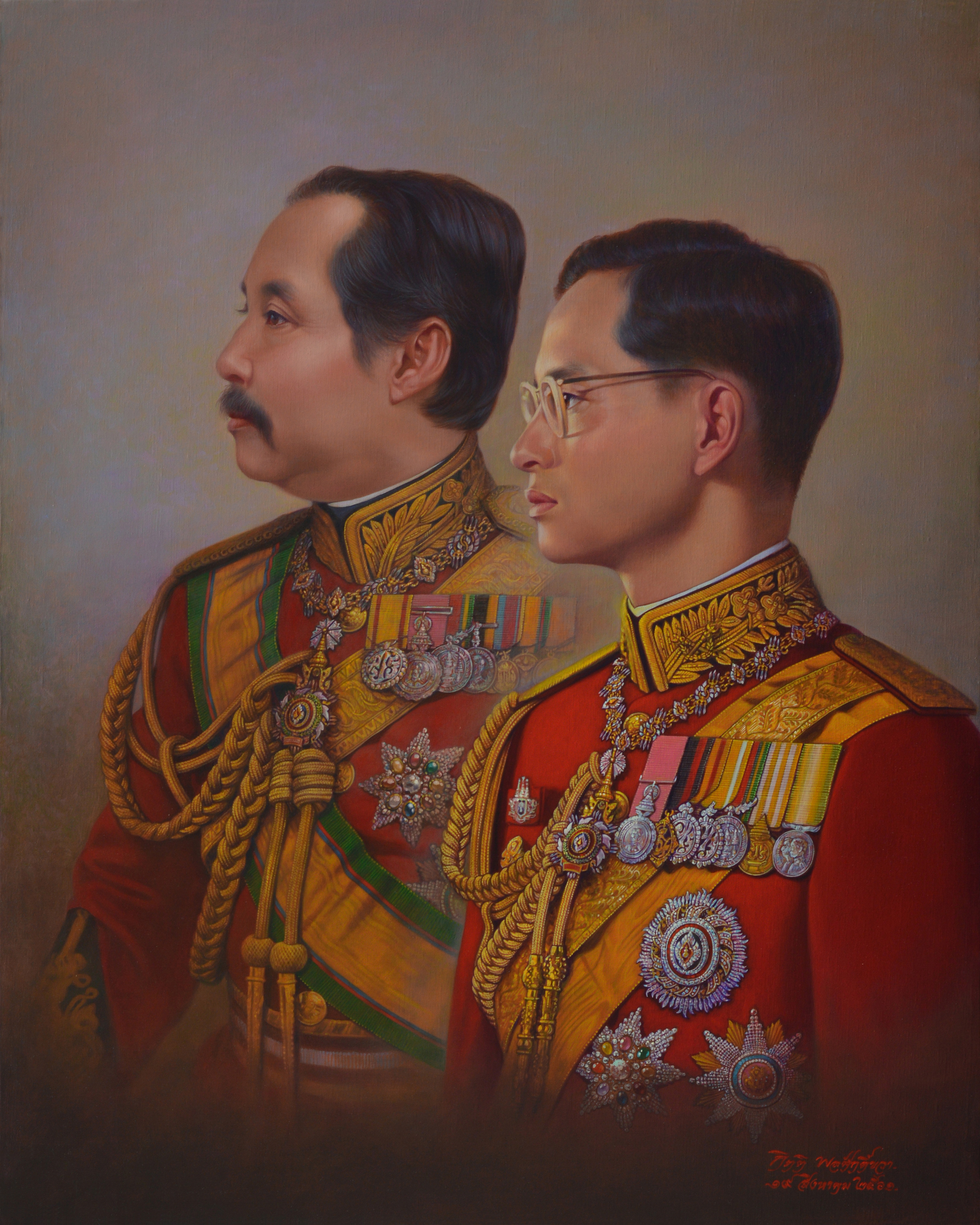 | คำสำคัญ : พระมหากษัตริย์ไทย, พระบาทสมเด็จพระจุลจอมเกล้าเจ้าอยู่หัว, ร.9, ศิลปะ, รัชกาลที่ 5, พ่อหลวง, พระบาทสมเด็จพระปรมินทรมหาภูมิพลอดุลยเดช, รัชกาลที่ 9, ร.5, พระบรมฉายาสาทิสลักษณ์, ภาพวาด |