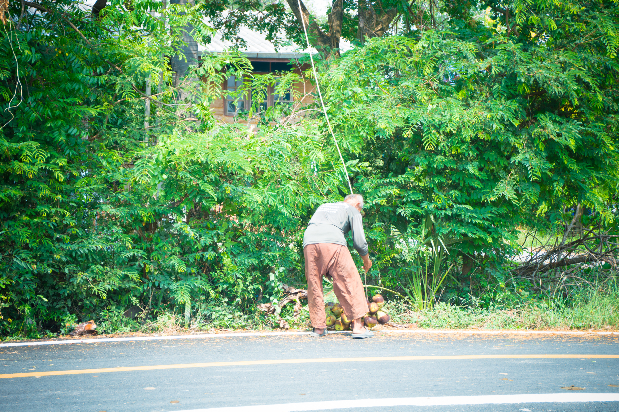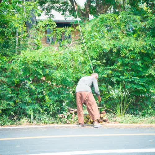 | คำอธิบาย : เมื่อลูกตาลลงสู่เบื้องล่าง จะมีคนคอยรับ เพื่อแกะออกจากเชือกไม่ให้เสียหาย |