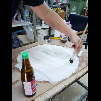 | คำอธิบาย : การทาทินเนอร์ลงบนผ้าก็อตทำให้ผ้าก็อตแนบติดไปกับตัวยาง |