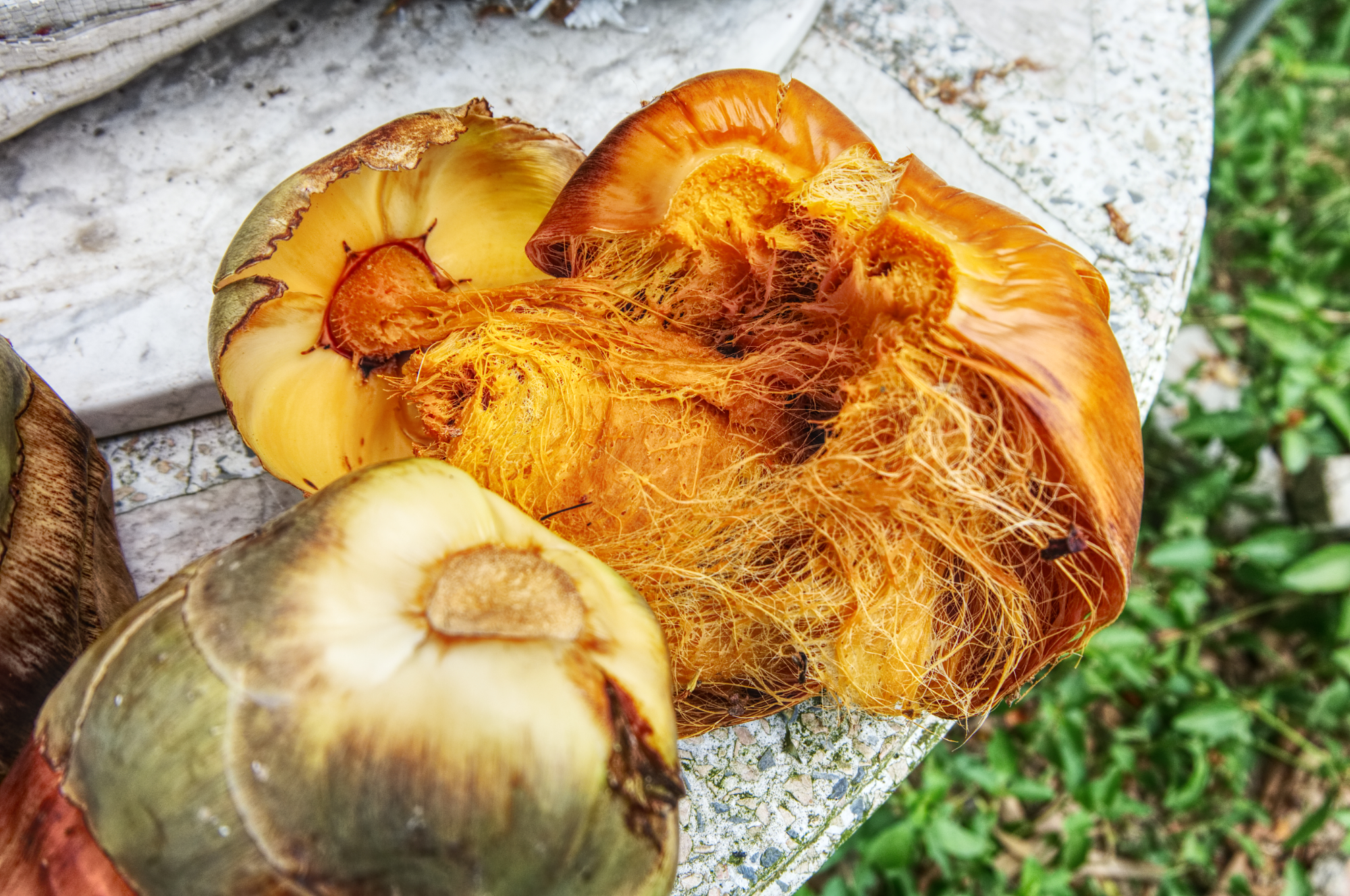 | คำอธิบาย : ลูกตาลที่สุกแล้ว เราจะนำเนื้อตาลที่สีส้มๆ ไปทำขนมตาล |