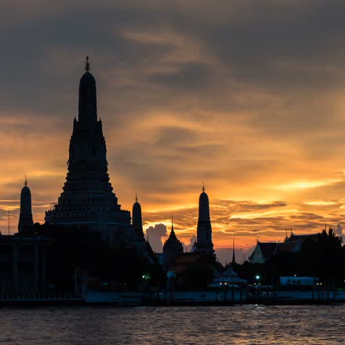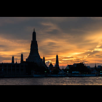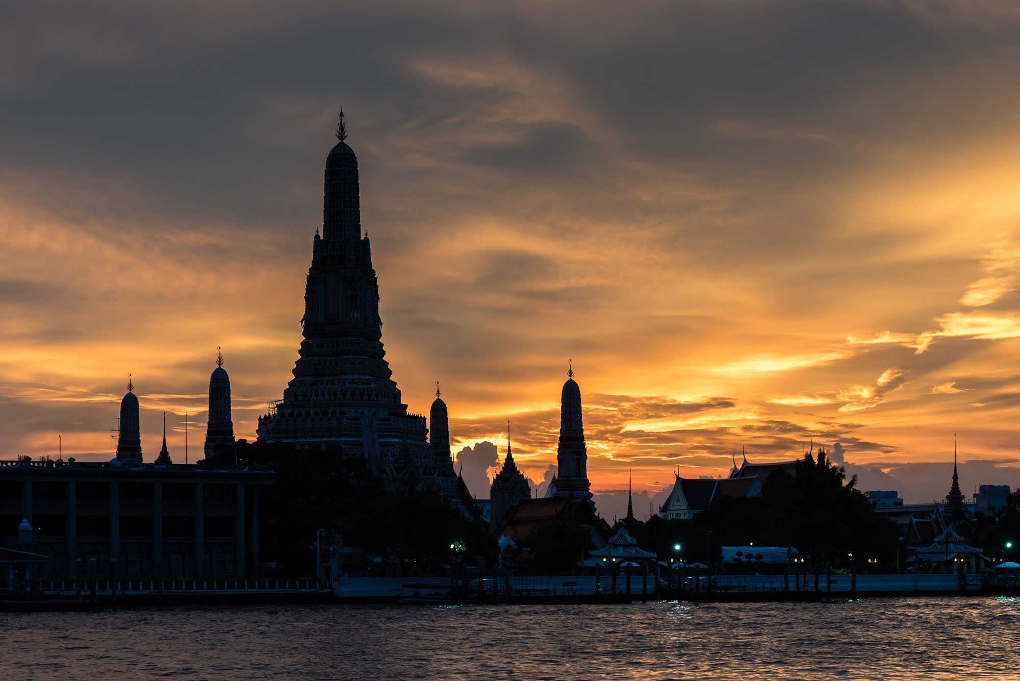 พระอาทิตย์ตก พระปรางค์วัดอรุณฯ และแม่น้ำเจ้าพระยา