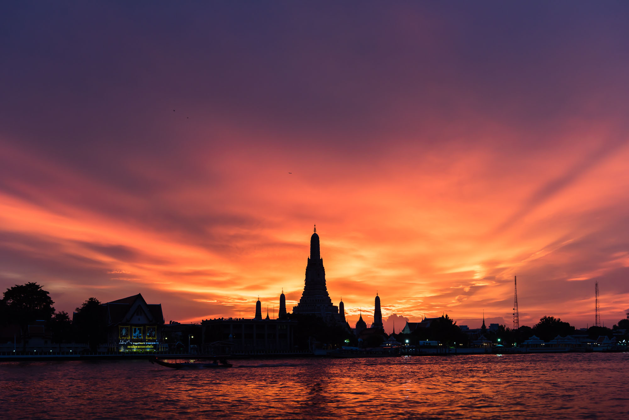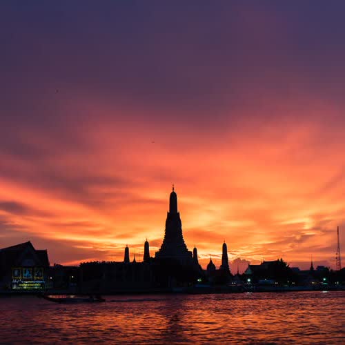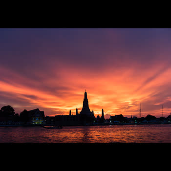 พระอาทิตย์ตก พระปรางค์วัดอรุณฯ และแม่น้ำเจ้าพระยา