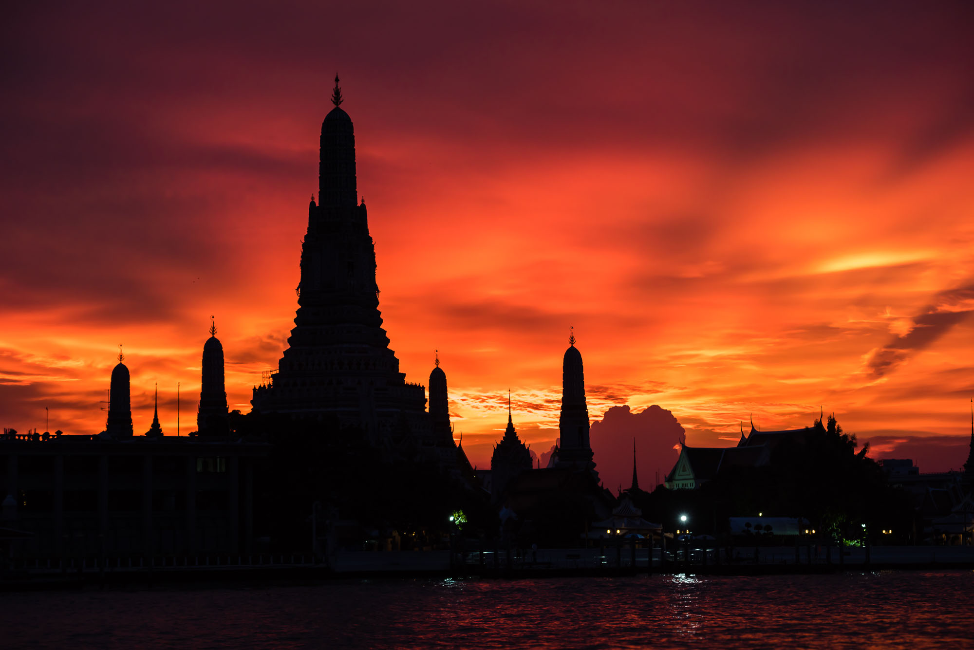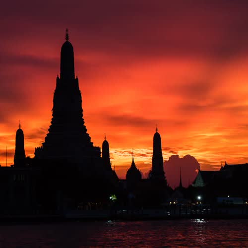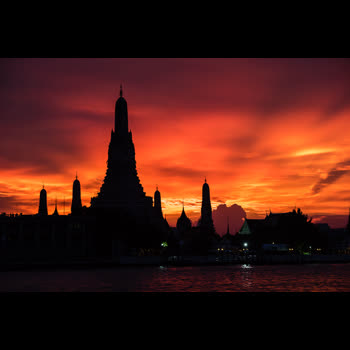 พระอาทิตย์ตก พระปรางค์วัดอรุณฯ และแม่น้ำเจ้าพระยา