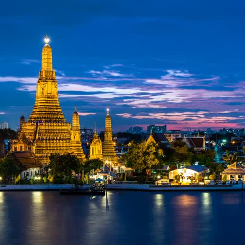 "พลบค่ำที่วัดอรุณฯ และแม่น้ำเจ้าพระยา".
