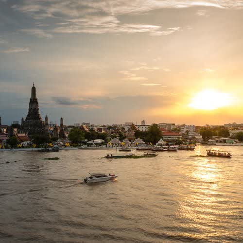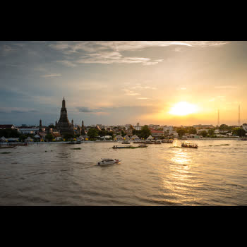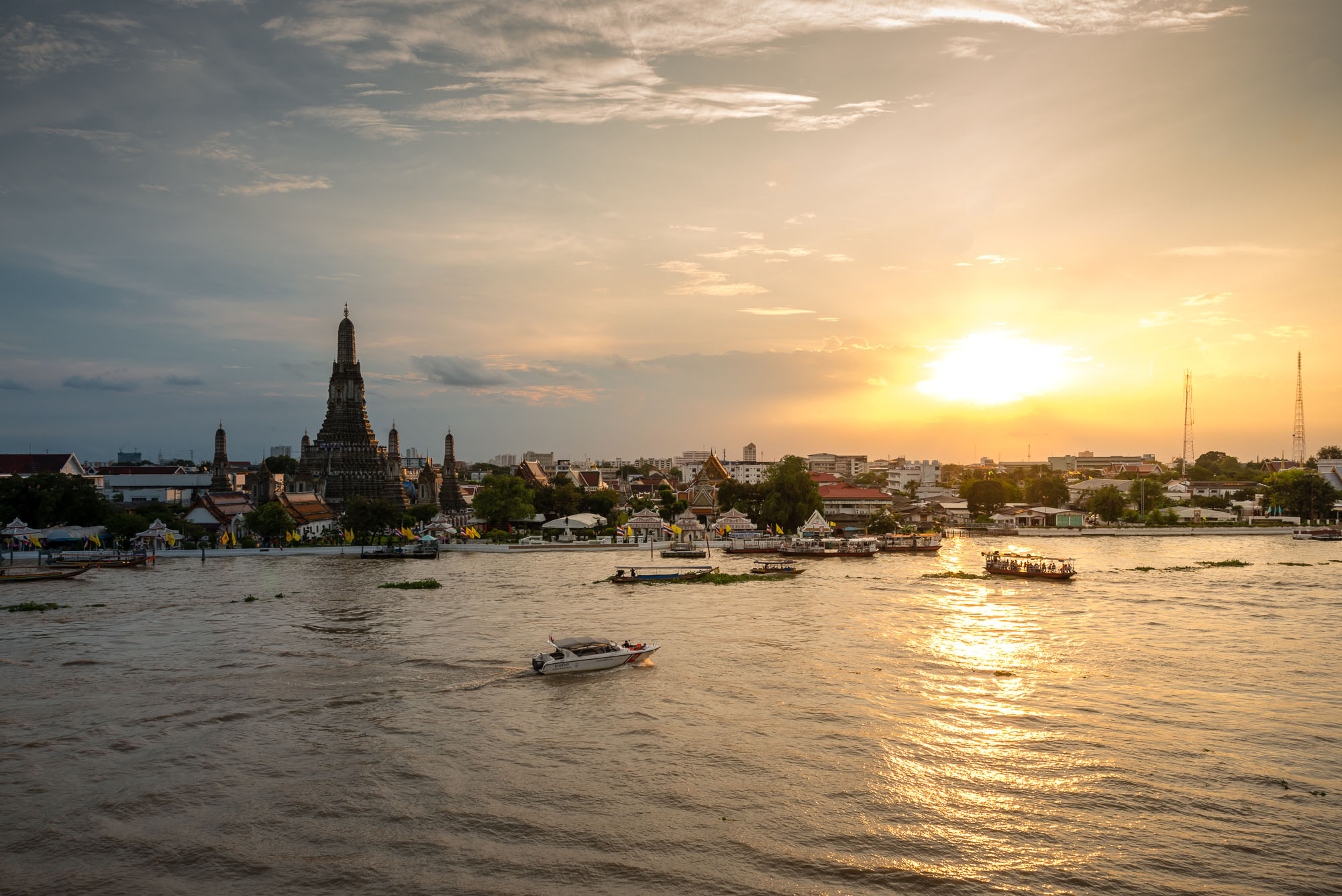 พระอาทิตย์ตกที่วัดอรุณฯ และแม่น้ำเจ้าพระยา