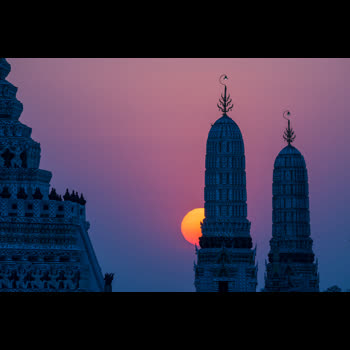 "พระอาทิตย์ตกที่วัดอรุณฯ และแม่น้ำเจ้าพระยา".