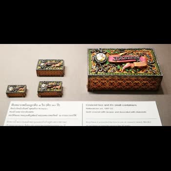 | ชื่อเรื่อง : หีบหมากทองคำลงยาประดับเพชร พร้อมลูกหีบ 3 ใบ (หีบ 30 ปี) |
