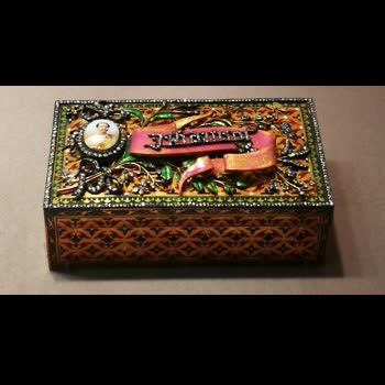 คำอธิบาย : หีบเครื่องพระยศที่ รัชกาลที่ 5 พระราชทานแก่เจ้าจอมมารดามรกฏซึ่งรับราชการสนองครบ 30 ปี พ.ศ. 2440 |