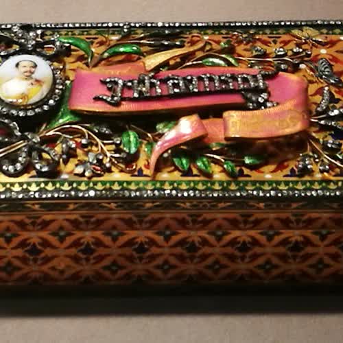 ชื่อเรื่อง : หีบหมากทองคำลงยาประดับเพชร (หีบ 30 ปี) |