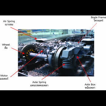 | คำอธิบาย : ซึ่งประกอบไปด้วย Air Spring(เบาะลม) , Wheel (ล้อ) , Motor (มอเตอร์) , Axle Spring (แหนบขดคอเพลา) , Axle Box (หม้อเพลา) , Bogie Frame (โครงแคร่) |