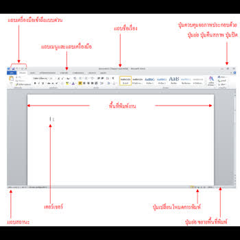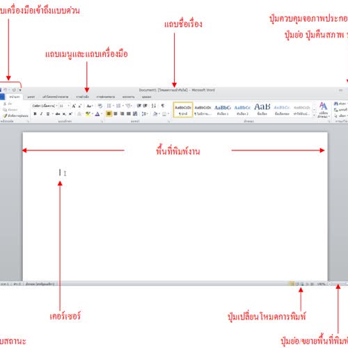 "ส่วนประกอบจอภาพโปรแกรม Microsoft Office Word 2010".