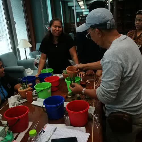 | คำอธิบาย : การอบรมการจัดสวนถาดแคคตัส ในโครงการส่งเสริมการใช้สื่อในคลังการศึกษาแบบเปิด ณ สำนักงานศาลปกครอง |