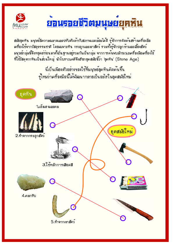 | ชื่อเรื่อง : ใบงาน: ย้อนรอยชีวิตมนุษย์ยุคหิน |