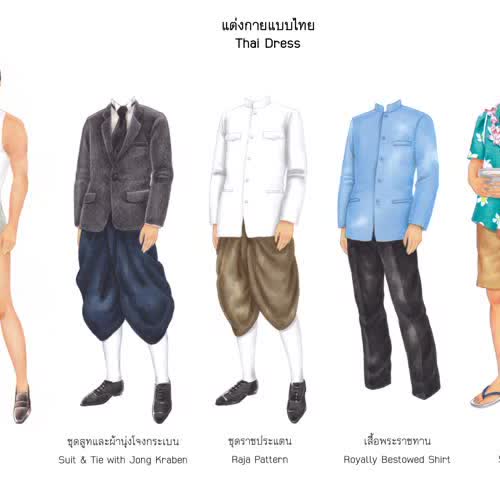 | คำสำคัญ : ชุดไทยผู้ชายแบบร่วมสมัย, ชุดราชปะแตน, clip art, มิวเซียมสยาม, ชุดสูทสามชิ้น, ชุดเสื้อพระราชทาน, การแต่งกาย, ชุดไทยประยุกต์สมัยรัชกาลที่ 5, Male Thai dress style, ชุดเครื่องแต่งกายไทย, สื่อเรียนรู้, เสื้อสงกรานต์, ชุดสูทและผ้านุ่งโจงกระเบน |