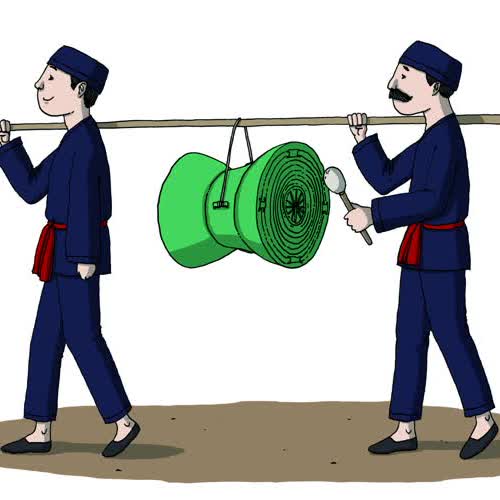Clip art ภาพวาดการแห่ตีกลองมโหระทึก ได้รับใบอนุญาตภายใต้ ให้เผยแพร่-ดัดแปลง-โดยต้องระบุที่มาแต่ห้ามใช้เพื่อการค้าและต้องเผยแพร่งานดัดแปลงโดยใช้สัญญาอนุญาตชนิดเดียวกัน 3.0 Thailand.