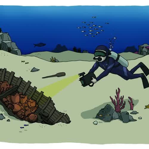 Clip art ภาพวาดงานโบราณคดีใต้น้ำ ได้รับใบอนุญาตภายใต้ ให้เผยแพร่-ดัดแปลง-โดยต้องระบุที่มาแต่ห้ามใช้เพื่อการค้าและต้องเผยแพร่งานดัดแปลงโดยใช้สัญญาอนุญาตชนิดเดียวกัน 3.0 Thailand.