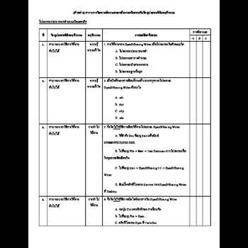| คำอธิบาย : (ตัวอย่าง) ตารางการวิเคราะห์ความสอดคล้องของข้อสอบกับวัตถุประสงค์เชิงพฤติกรรม โปรแกรมประมวลผลคำแบบเปิด (OpenOffice.org Writer, LibreOffice Writer) |