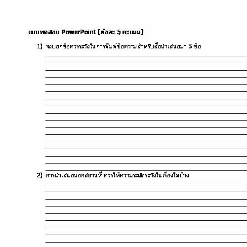 | ชื่อเรื่อง : แบบทดสอบการออกแบบสื่อนำเสนอ |