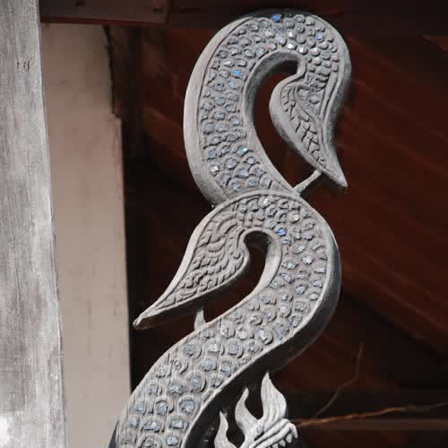 | คำอธิบาย : คันทวยไม้แกะสลัก เป็นงานศิลปกรรมท้องถิ่นที่เป็นเอกลักษณ์ของสิมวัดแจ้ง จังหวัดอุบลราชธานี มีลักษณะเป็นรูปหัวนาคมีหงอนสะบัดปลายเป็นกนกเปลว |