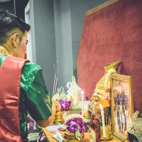 | คำอธิบาย : การบูชาครูก่อนการแสดงจะเริ่ม เพื่อความเป็นสิริมงคล |