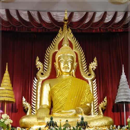 | คำอธิบาย : พระเจ้าใหญ่อินทร์แปง พระพุทธรูปคู่บ้านคู่เมืองของชาวอุบลราชธานี ประดิษฐาน ณ วัดมหาวนาราม มีขนาดหน้าตักกว้าง 6 ศอก สูงจากเรือนแท่นถึงเปลวพระโมลี 10 ศอก ลงรักปิดทองด้วย เป็นพุทธศิลปะที่งดงาม เพื่อเป็นองค์แทนสมเด็จพระสัมมาสัมพุทธเจ้า สร้างเสร็จเมื่อวันเพ็ญเดือนห้า ตรงกับวันอาทิตย์ เดือนเมษายน ช่วงเวลาบ่ายสามโมง ซึ่งปรากฏในศิลาจารึกที่ด้านหน้าองค์พระ จึงกำหนดเอาวันเพ็ญเดือนห้าเป็นวันจัดเฉลิมฉลองพระเจ้าใหญ่อินทร์แปงเป็นประจำทุกปี ประชาชนหลั่งไหลกันมากราบนมัสการขอพรดลบันดาลให้ประสบสุขตลอดไป นอกจากนี้แล้วในช่วงเทศกาลวันสงกรานต์ ทางวัดก็ได้เปิดโอกาสให้ประชาชนเข้าไปสรงน้ำพระเจ้าใหญ่อินทร์แปงด้วย |