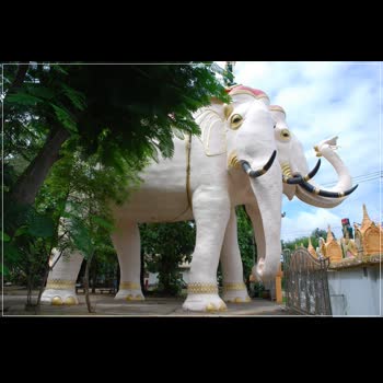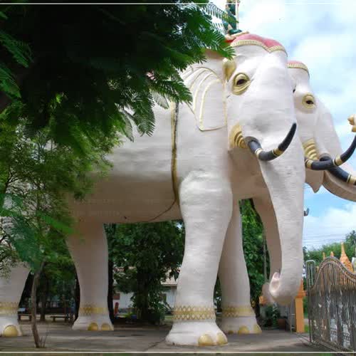| คำอธิบาย : ซุ้มประตูทางเข้าด้านหน้าวัด (ประตูโขง) วัดสระประสานสุข หรือวัดบ้านนาเมือง จังหวัดอุบลราชธานี สร้างโดยหลวงปู่บุญมี โชติปาโล มีลักษณะเป็นรูปพระอินทร์ทรงช้างเอราวัณ 3 เศียร ที่มีขนาดใหญ่ สามารถมองเห็นตั้งตระหง่านโดดเด่นเป็นสง่ามาแต่ไกล ซึ่งหลวงปู่มีความเชื่อว่า “ช้างเป็นสัตว์ใหญ่ใครได้ลอดท้องช้างนับว่าเป็นสิ่งที่เป็นมงคล โดยมีมีตั้งแต่โบราณกาลว่าใครที่ได้ลอดท้องช้างจะอายุยืนเป็นสิริมงคลต่อตนเอง” |