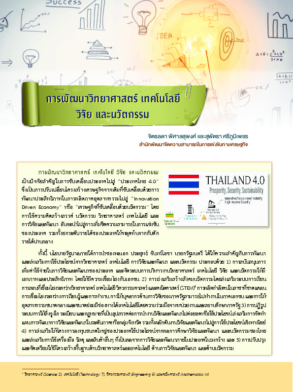 | คำสำคัญ : การพัฒนา, นวัตกรรม, เทคโนโลยี, วิทยาศาสตร์, วิจัย |
