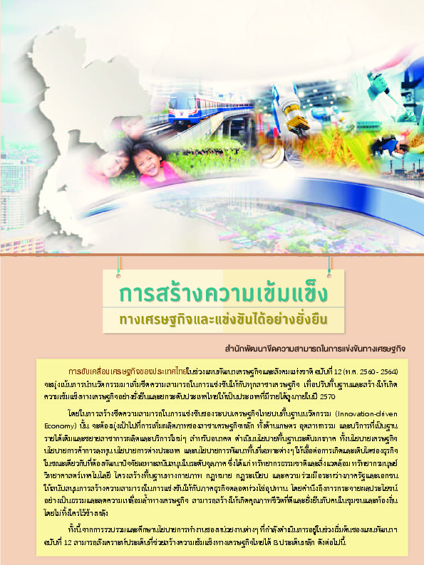 การสร้างความเข้มแข็งทางเศรษฐกิจและแข่งขันได้อย่างยั่งยืน ได้รับใบอนุญาตภายใต้ ให้เผยแพร่-โดยต้องระบุที่มาแต่ห้ามดัดแปลงและห้ามใช้เพื่อการค้า 3.0 Thailand.