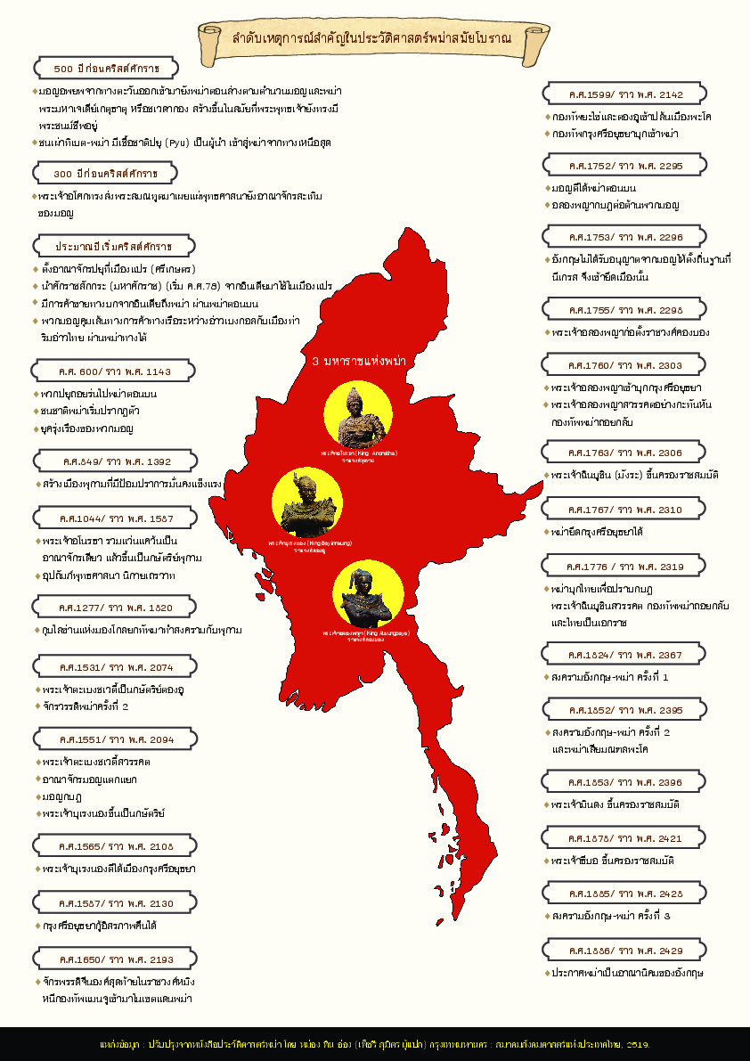 (2561). ลำดับเหตุการณ์สำคัญทางประวัติศาสตร์พม่า: สมัยโบราณ-อาณานิคมอังกฤษ,