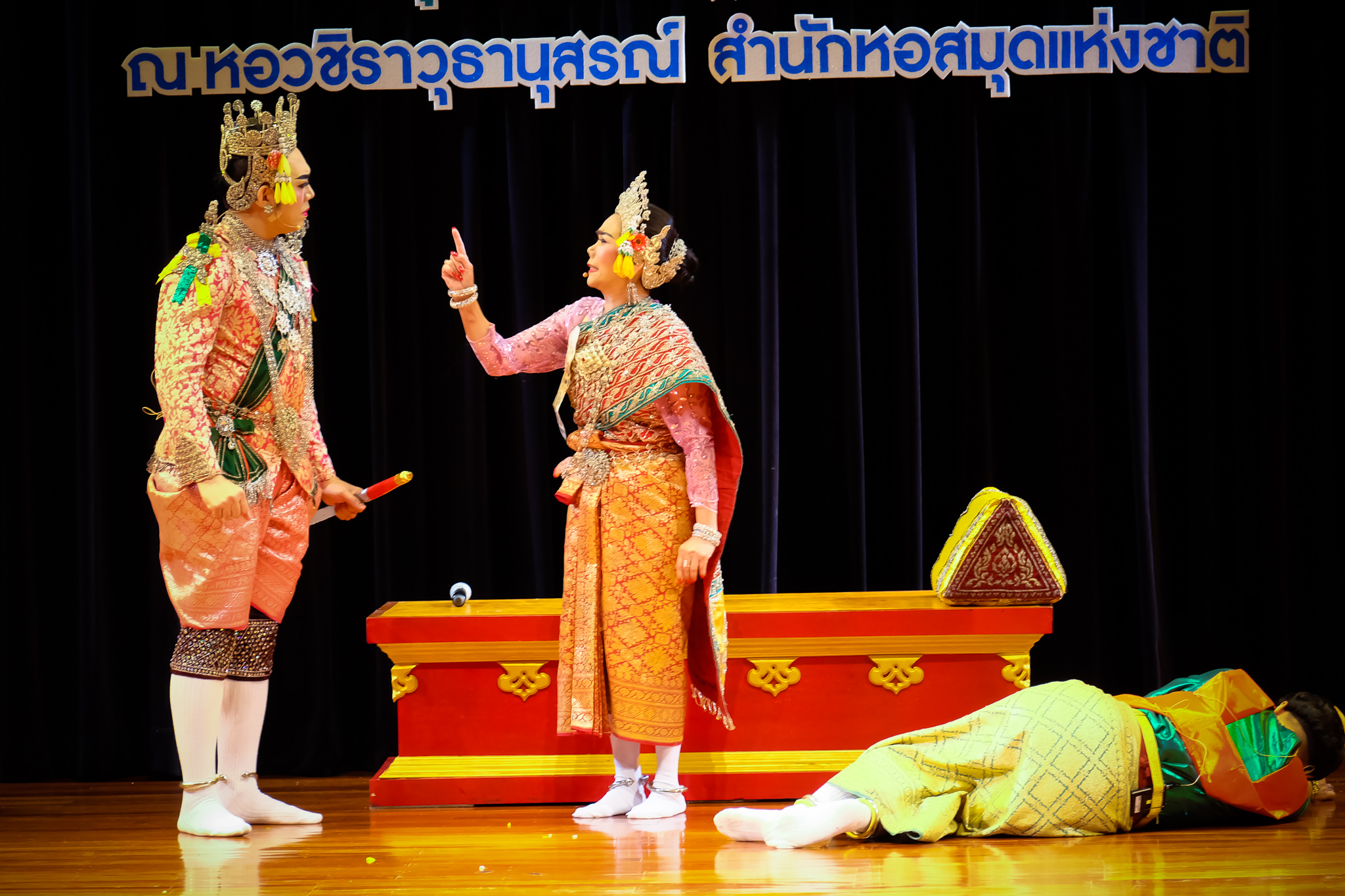 | คำอธิบาย : การแสดงลิเกทรงเครื่อง เรื่อง ขุนช้างขุนแผน ตอน พิพากษานางวันทอง ณ หอวชิราวุธานุสรณ์ สำนักหอสมุดแห่งชาติ เมื่อวันที่ 4 ก.ค. 2561 |