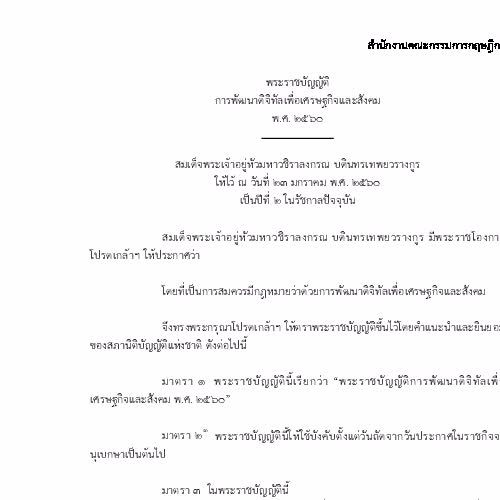 | ชื่อเรื่อง : พระราชบัญญัติการพัฒนาดิจิทัลเพื่อเศรษฐกิจและสังคม พ.ศ. ๒๕๖๐ |