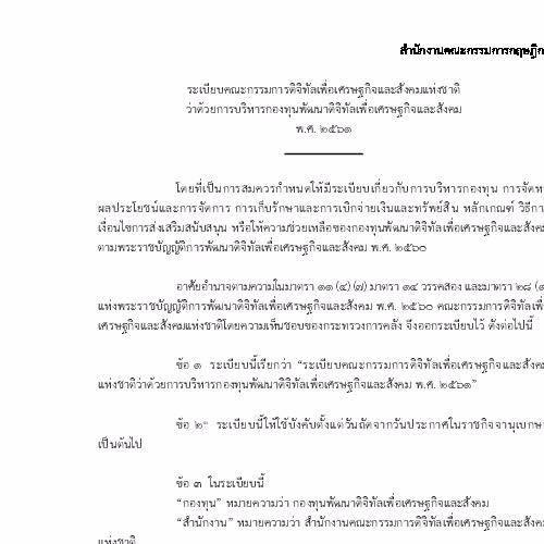 ระเบียบคณะกรรมการดิจิทัลเพื่อเศรษฐกิจและสังคมแห่งชาติ ว่าด้วยการบริหารกองทุนพัฒนาดิจิทัลเพื่อเศรษฐกิจและสังคม พ.ศ. ๒๕๖๑ ได้รับใบอนุญาตภายใต้ ให้เผยแพร่-โดยต้องระบุที่มาแต่ห้ามดัดแปลงและห้ามใช้เพื่อการค้า 3.0 Thailand.