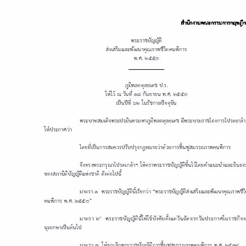 | ชื่อเรื่อง : พระราชบัญญัติส่งเสริมและพัฒนาคุณภาพชีวิตคนพิการ พ.ศ.2550 |