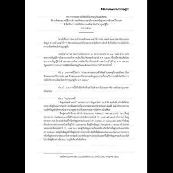(2561). "ประกาศกระทรวงดิจิทัลเพื่อเศรษฐกิจและสังคม เรื่อง ลักษณะและวิธีการส่ง และลักษณะและปริมาณของข้อมูล ความถี่และวิธีการส่ง ซึ่งไม่เป็นการก่อให้เกิดความเดือดร้อนรำคาญแก่ผู้รับ พ.ศ. ๒๕๖๐".