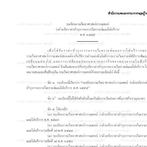 "ระเบียบกรมวิทยาศาสตร์การแพทย์ว่าด้วยอัตราค่าบำรุงตรวจวิเคราะห์และให้บริการ พ.ศ. 2555".