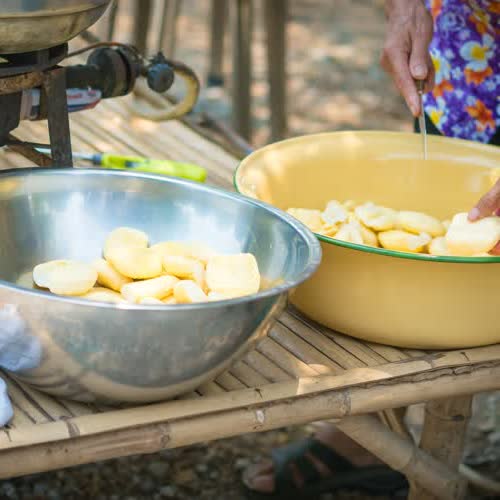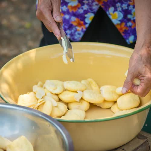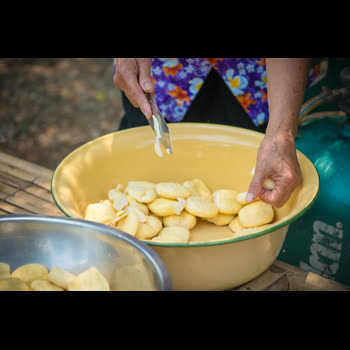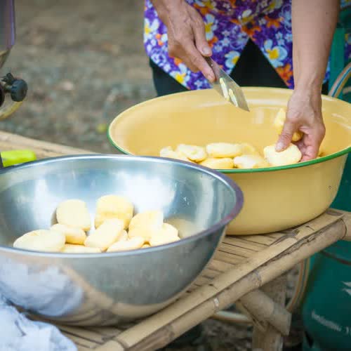 | คำอธิบาย : ตัดแต่งจาวตาลก่อนนำไปเชื่อม |