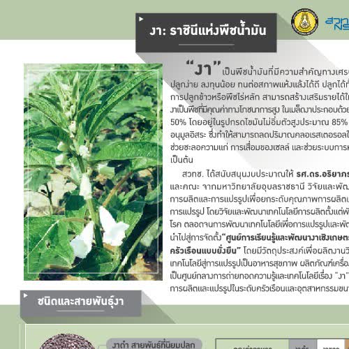 | ชื่อเรื่อง : งา ราชินีแห่งพืชน้ำมัน |