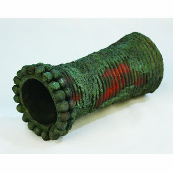 | คำอธิบาย : ในสมัยโบราณ สำริดเป็นโลหะชนิดแรกที่มนุษย์สามารถหลอมได้ด้วยความร้อนที่ได้รับถ่ายทอดเทคโนโลยีมาจากจีน ปล้องแขนเป็นเครื่องประดับที่พบในแหล่งโบราณคดีสมัยก่อนประวัติศาสตร์ในบ้านเชียง |
