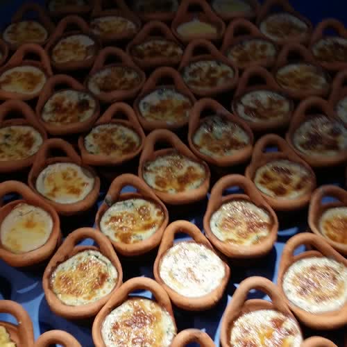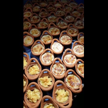 | คำอธิบาย : ขนมหม้อแกง หรือ ขนมกุมภมาศ คือขนมที่ใช้ไข่ แป้ง และกะทิเป็นส่วนประกอบสำคัญ นำผสมกันในถาดตามสัดส่วน แล้วจึงนำไปอบจนหน้าของขนมหม้อแกงมีสีน้ำตาลทอง น่ารับประทาน ปัจจุบันมีการทำเผือก เม็ดบัว ถั่ว และหอมเจียว มาผสม และแต่งหน้าขนมหม้อแกง ทำให้ขนมหม้อแกงมีรสชาติที่กลมกล่อมมากขึ้น |
