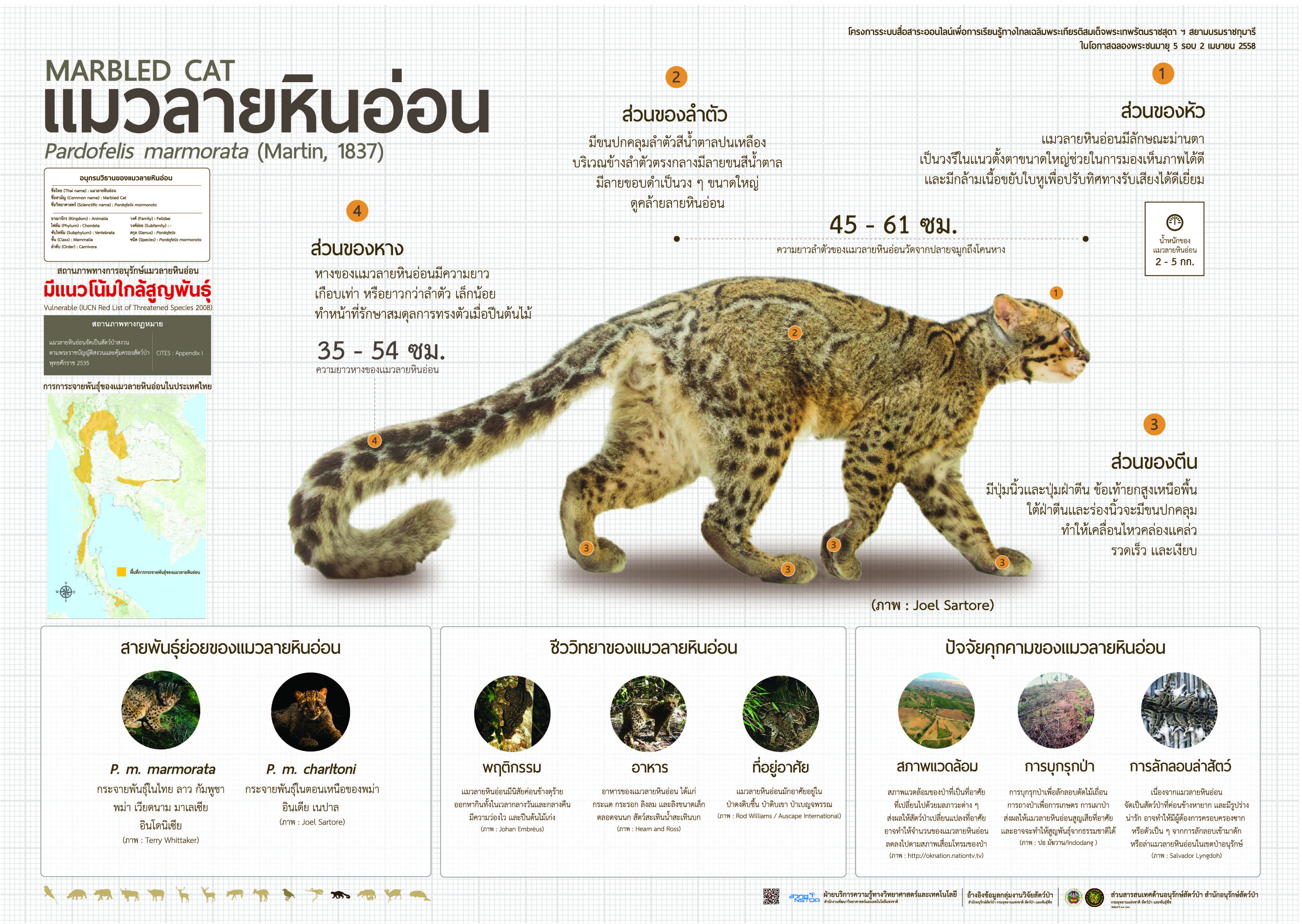 คำสำคัญ : สัตว์ป่าสงวน, สัตว์ป่า, Marbled Cat, สัตว์ป่ามีแนวโน้มใกล้สูญพันธุ์, Pardofelis marmorata |