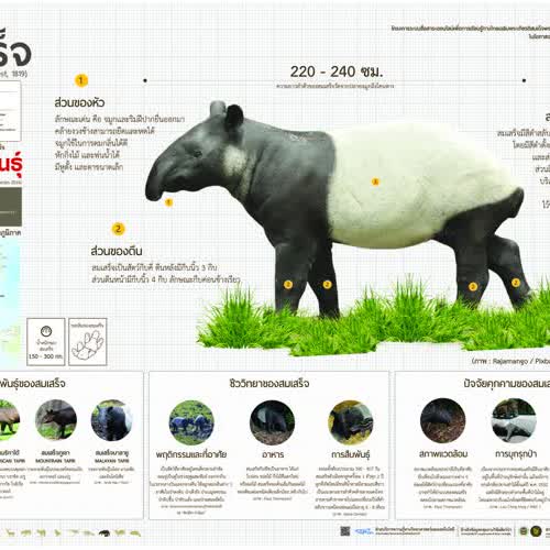 | คำสำคัญ : สัตว์ป่าใกล้สูญพันธุ์, สัตว์ป่าสงวน, สมเสร็จ, สัตว์ป่า, Mayayan Tapir |