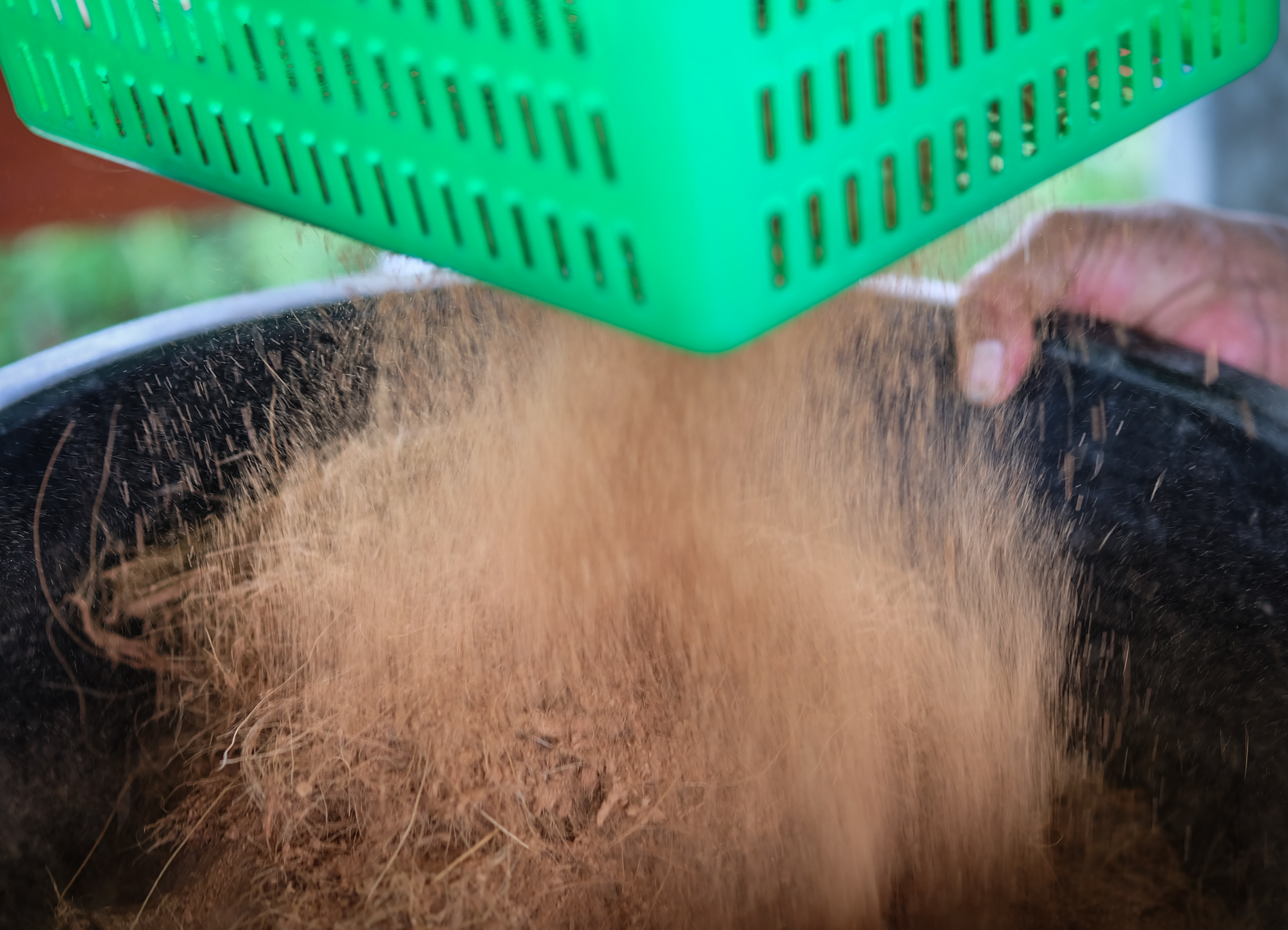 | คำอธิบาย : ร่อนขุยมะพร้าวเพื่อนำไปทำตุ้มจิ๋วสำหรับตอนกิ่ง |