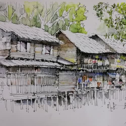 | คำสำคัญ : art, สีน้ำ, ศิลปะ, บ้านไม้, วาดรูป, บ้าน |