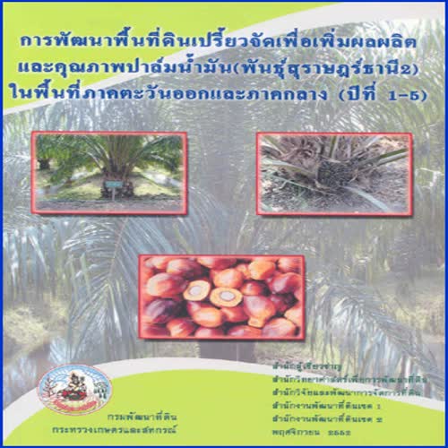 การพัฒนาพื้นที่ดินเปรี้ยวจัดเพื่อเพิ่มผลผลิตและคุณภาพปาล์มน้ำมัน(พันธุ์สุราษฎร์ธานี2)ในพื้นที่ภาคตะวันออกและภาคกลาง (ปีที่ 1-5) ได้รับใบอนุญาตภายใต้ ให้เผยแพร่-โดยต้องระบุที่มาแต่ห้ามดัดแปลงและห้ามใช้เพื่อการค้า 3.0 Thailand.