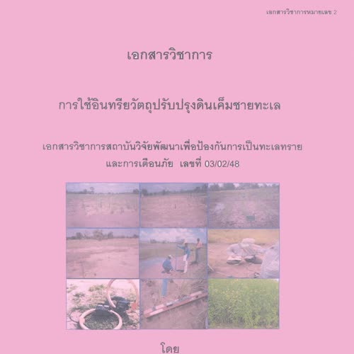 "เอกสารวิชาการ การใช้อินทรียวัตถุปรับปรุงดินเค็มชายทะเล : เอกสารวิชาการสถาบันวิจัยพัฒนาเพื่อป้องกันการเป็นทะเลทรายและการเตือนภัย เลขที่ 30/02/48".