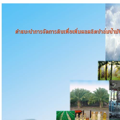 | ชื่อเรื่อง : คำแนะนำการจัดการดินเพื่อเพิ่มผลผลิตปาล์มน้ำมัน |